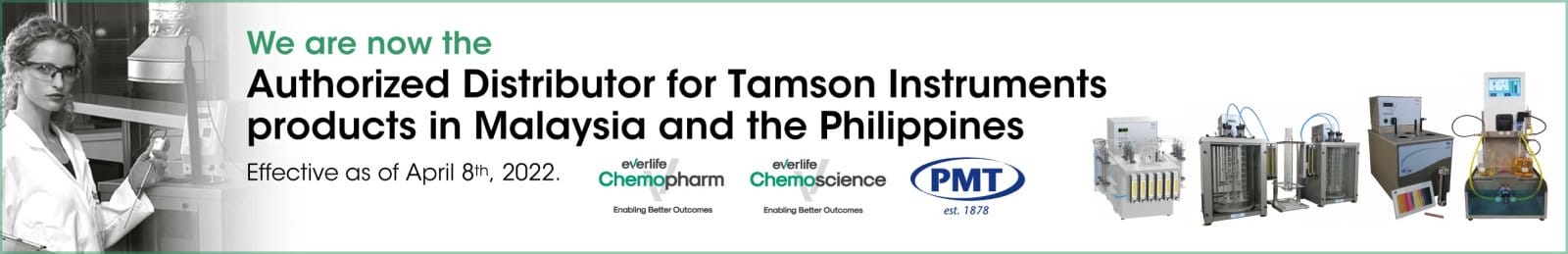 We are pleased to announce that as of 8th April 2022, Chemopharm Group is officially the Authorized Distributor for Tamson Instruments products in Chemopharm Malaysia and Chemoscience Philippines.