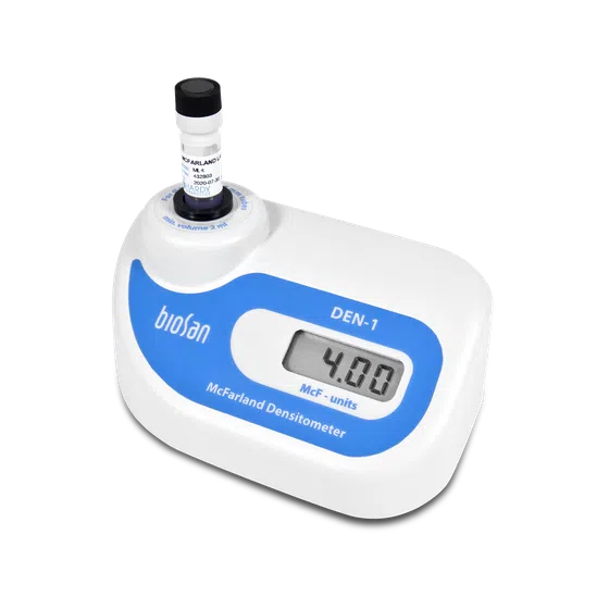 A densitometer is used for measurement of cell concentration (bacterial, yeast cells) during fermentation process, determination of microorganism sensitivity to antibiotics, microorganism identification using various test-systems, for measurement of absorption at the definite wavelength, as well as for quantitative estimation of concentration of colour solution, absorbing green light.