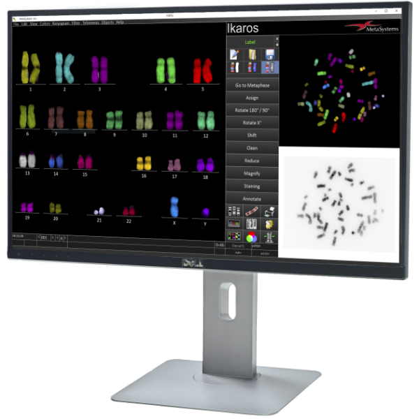 The innovative imaging software Ikaros combines state-of-the-art tools for image acquisition and processing with a workflow based on artificial intelligence (AI) for karyotyping. Together with the congenial case and image management, Ikaros is thus an essential building block for scalable and efficient solutions for cytogenetic imaging.