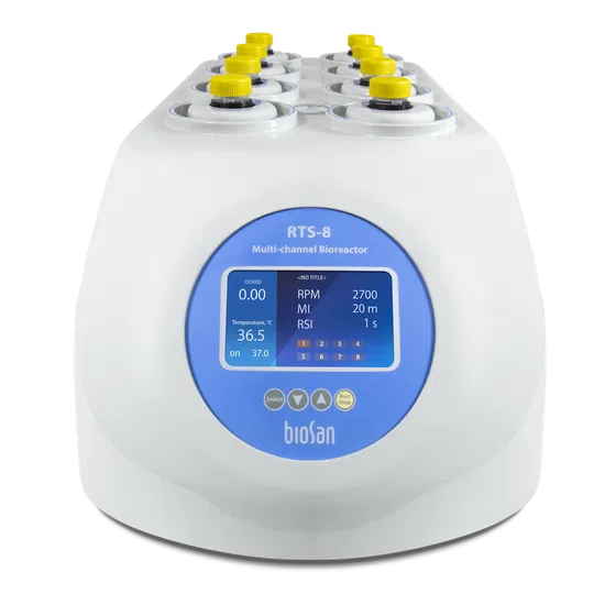 RTS-8 is a personal bioreactor that utilizes patented Reverse-Spin® technology that applies non-invasive, mechanically driven, low energy consumption, innovative type of agitation where cell suspension is mixed by the single-use falcon bioreactor tube rotation around its axis with a change of direction of rotation motion resulting in highly efficient mixing and oxygenation for aerobic cultivation. Combined with a near-infrared optical system it is possible to register cell growth kinetics non-invasively in real time.
