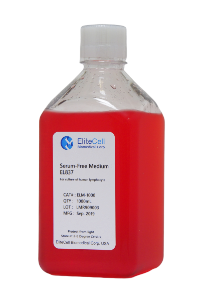 EL837 Serum-Free Medium is an excellent and professional medium for human lymphocyte induction and expansion. Xeno-free and chemically-defined composition brings EL837